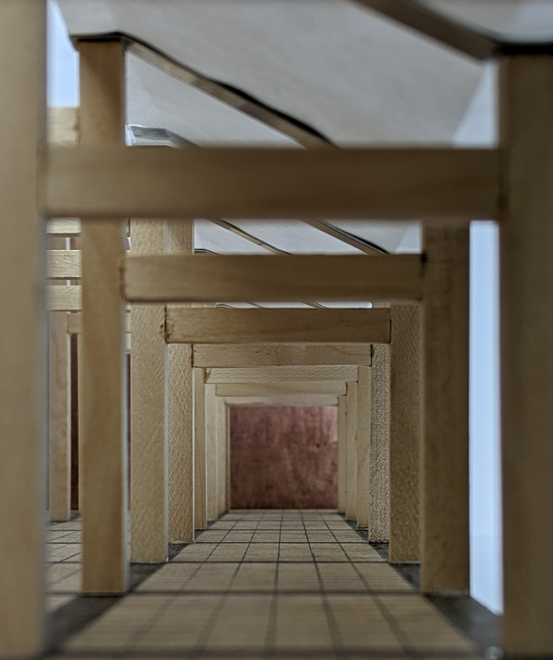 I like to look at my chosen site as two communities. One inhabited by nature and one by humans, one by industrial buildings and one by a housing estate. They are both a body of people or things viewed collectively. The project consists of three acts. Removing the fence separating the two communities, and adding two structures. The two structures both adapt to their individual community while at the same time having their own personal character. The structure of the painting adapts to its community. It has the same geometry, height and width. While it adapts, it also shows its uniqueness by being more porous than the others in its community, mediating the two communities as it sits on the edge of the painting. The structure of the sketch also adapts to its community by bringing its industrial heritage alongside the free growth of nature. It adapts to the geometry of the two cranes but is wilder than its fellow citizens. It grows out of the main building and spreads out just like the nature that will grow uncontrolled on to the structure and on the rest of the citizens of the sketch. The structure enhances the intelligence of nature and also how it grows and withers.